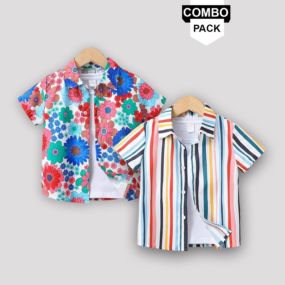 Toddlers Kids Boy Fancy Line And Flower Shirt (Combo Pack Of 2) Shirt For Boy - 0 Month - 6 Month